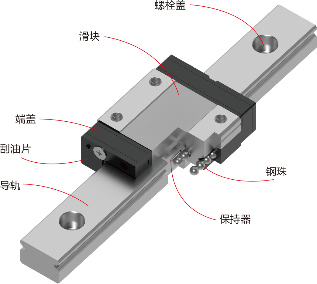 - 有钢珠保持器设计之规格,在精度允许下具备互换性。