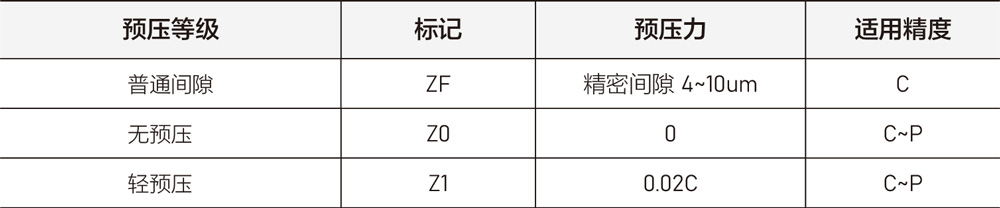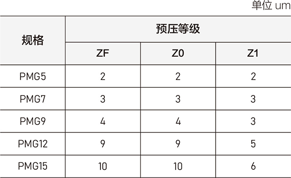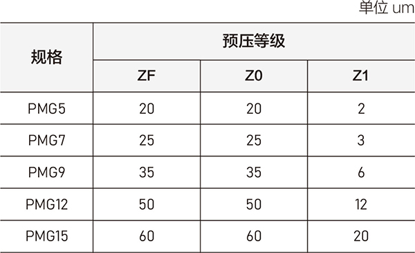 PMGN/PMGW系列提供普通间隙、无预压、轻预压三种预压力。